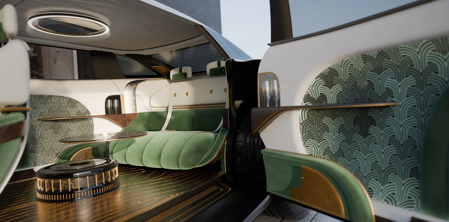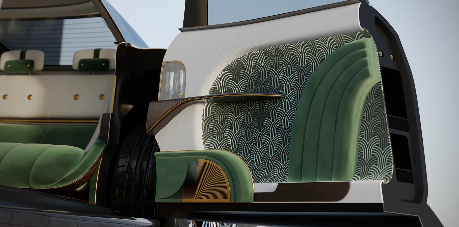 L’EPOQUE is a concept car inspired by the grand parade cars and chauffeur-driven coupés of the 1920s and 1930s, reinterpreted with 21st-century proportions and technologies. It is not a nostalgic exercise: it is a cultural translation of that language – coachbuilding, Art Deco, stage presence – into contemporary vocabulary.