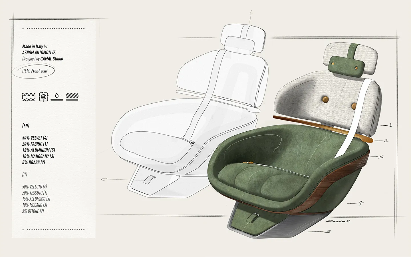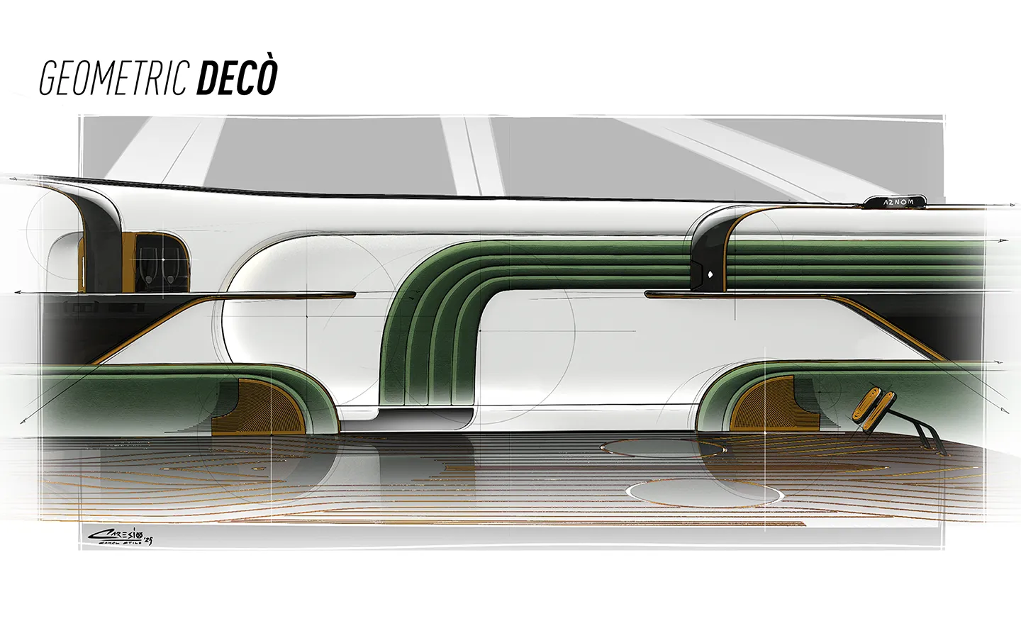 “At a time when hostility towards the automotive world is a sad topic of current affairs, our vision – and our hope – is to return to beauty, style and craftsmanship in cars. For many years, the car has been a status symbol, an extension of one’s style, a masterpiece of technique, design and materials. With an eye to the future, but inspired by the past, I would like to see the car loved again, once more a source of inspiration and not just an unpleasant means of getting from point A to point B. L’EPOQUE is the vision of AZNOM and our friends at CAMAL Studio: a deliberately exaggerated idea, but one capable of bringing the car back into the realm of works of art and human ingenuity.”